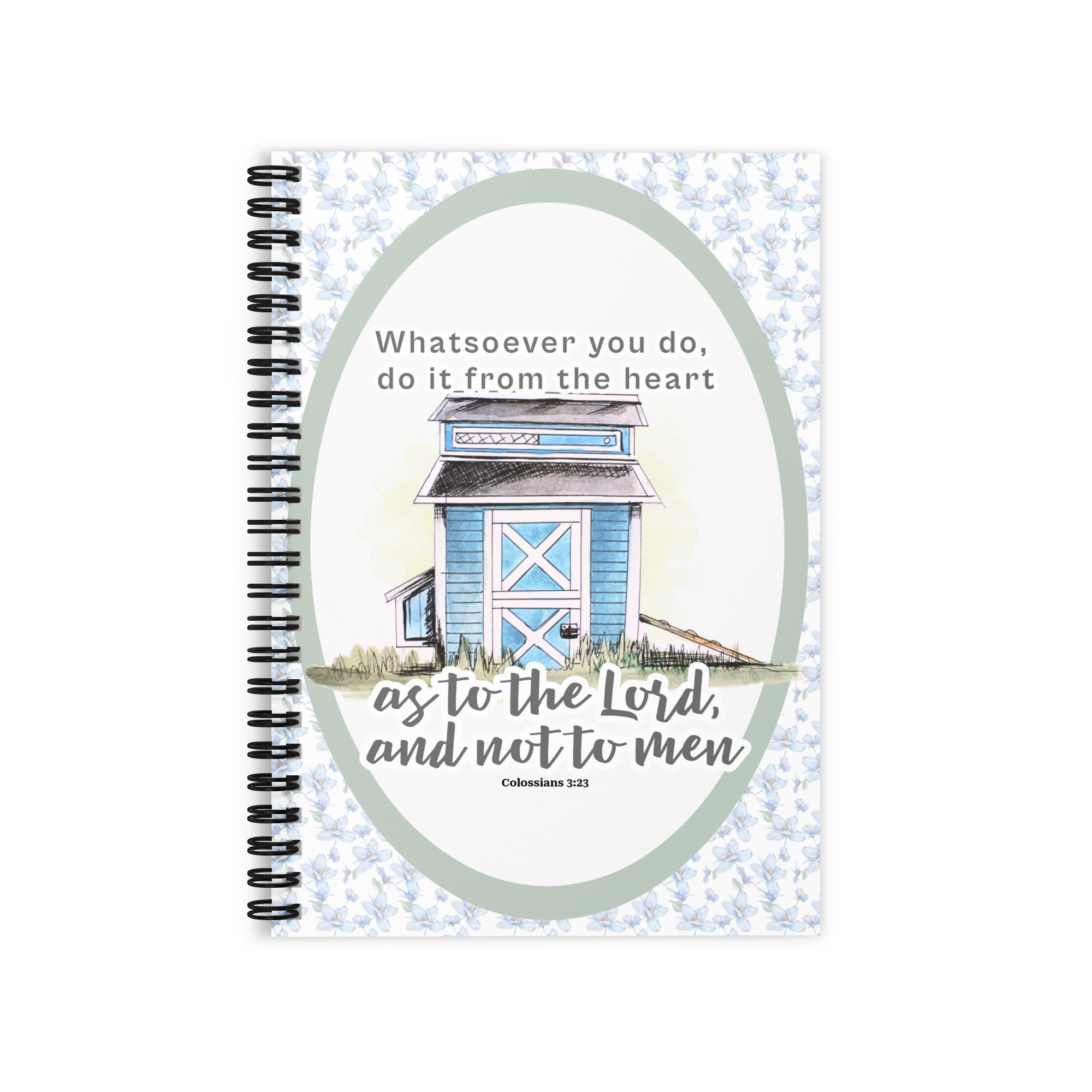 Our original water color chicken coop illustration featuring Colossians 3:23 with a floral vintage background is soft colors as a gentle reminder to remind us to work for the Lord!
