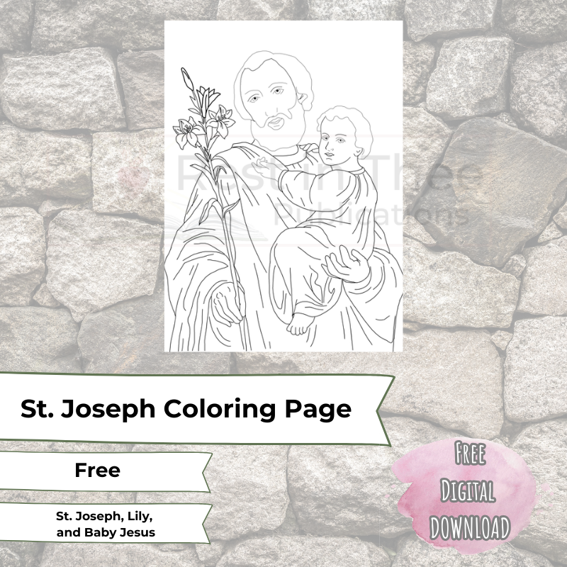 Free Catholic Coloring Page of St. Joseph, Baby Jesus, and the Lily for instant download.
