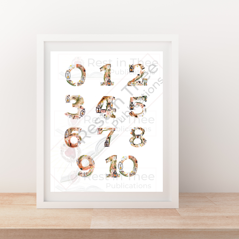 St. Joseph’s Nursery 0-10 Number Poster began with paper, ink and a birthday card! After creating a Marian Themed birthday card for a loved one, these floral numbers with symbols of the Blessed Mother scattered throughout were carefully created and turned into a poster, perfect for subtle and sweet Catholic home decor!